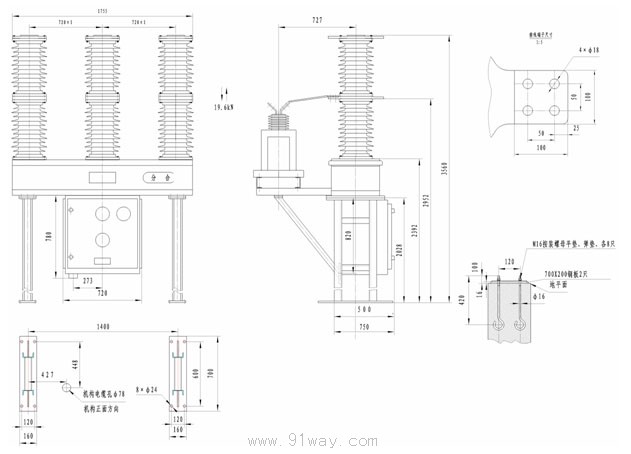 该产品在真空灭弧室与瓷套间充有微正压的SF6气体(无内附CT:0.02MPa,内附CT:0.2MPa),确保内部不会产生凝露及吸潮现象,同时可避免原ZW7系列产品内部填充有机绝缘材料易造成气泡、贯穿性放电,维护、维修困难等缺陷。