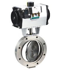 GIQ-AB型系列气动高真空蝶阀的气动执行器是以压缩空气为动力,通过电磁换向阀改变气路方向,推动活塞齿条、齿轮的机械运动,以角行程输出扭矩来驱动蝶阀,作启闭运动,从而达到接通或切断真空管路中气流的目的。是目前一种新型的气动执行器控制的气动真空蝶阀,分为双作用和单作用(弹簧复位)气缸。可选配反馈信号装置及电气阀门定位器。